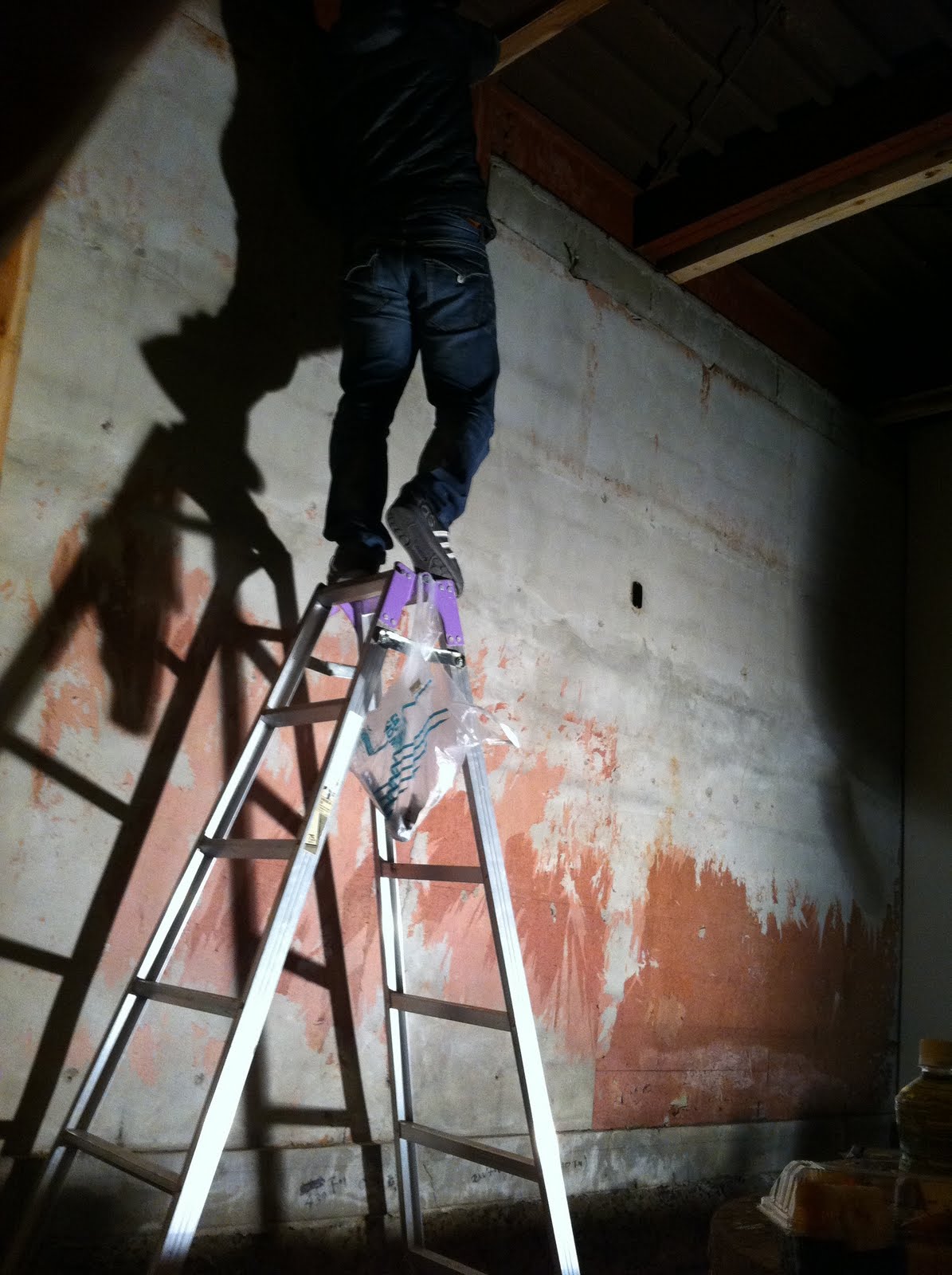夜明け市場自体、ふるい建物ですから、まっすぐ板をはってもゆがんでいきます。
